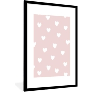 Fotolijst inclusief poster - Posterlijst roze hartjes - Meisjeskamer decoratie - Fotokader meisje - Kinderkamer accessoires - Picture frame kinderen - Lijsten - Zwarte lijst 60x90 cm - Muurdecoratie slaapkamer - - Kinderposter