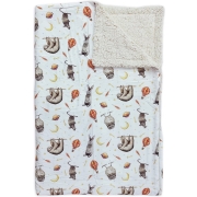 Heerlijke zachte en warme kids deken met dromerige decoraties, zoals een luiaard met baby, konijntjes, muisjes, uilen sterren en de maan. De print is handgeschilderd door Mies met aquarelverf en…