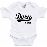 Born in 2023 tekst baby rompertje wit babys - Kraamcadeau/ zwangerschapsaankondiging - 2023 geboren cadeau 80
