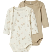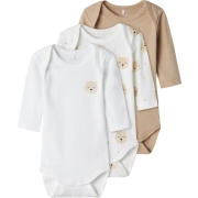 Name It Romper L/æ - Noos - NbnBody - 3-pack - Oxford Tan - Name It - 56 - Romper L/S