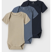 Name It Rompers k/æ - Rib - Noos - NbnBody - 3-pack - China Blue - Name It - 50 - Romper S/S