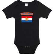Holland baby rompertje met vlag zwart jongens en meisjes - Kraamcadeau - Babykleding - Nederland landen romper 68