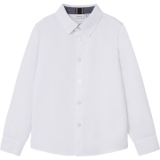 Wit hemd voor jongens van Name it met lange mouwen. Dit oxford hemdje is aan de binnenkant van de kraag afgewerkt met donkere jeans. Het materiaal voelt heel zacht aan…