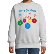 Kersttrui/sweater voor jongens/meisjes - pastel/groen - kerstballen - poesjes - Merry Christmas 3-4 jaar (98/104) -