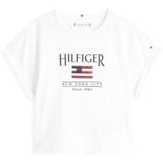 Kleur: Wit Samenstelling: 100% katoen Mouwen: Kort met manchet Halslijn: Ronde hals Pasvorm: Relaxed Details: T-shirt van puur katoen met een Tommy Hilfiger-vlag versierd met pailletten op de borst,…