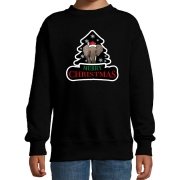 Dieren kersttrui beagle zwart voor jongens of meisjes - Foute honden kerstsweater. Deze Kerst sweater / trui is bedrukt een beagle in een kerstboom en de tekst Merry Christmas. Deze Kerstsweater…