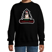 Dieren kersttrui britse bulldog zwart voor jongens of meisjes - Foute honden kerstsweater. Deze Kerst sweater / trui is bedrukt een britse bulldog in een kerstboom en de tekst Merry Christmas.…