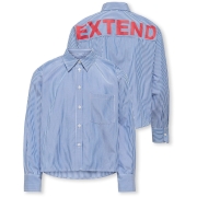 Fris en speels! De KOGEMA blouse met blauw-witte strepen krijgt een stoere touch door de opvallende EXTEND opdruk op de achterkant. Een perfecte mix van klassiek en cool voor de zomer.…