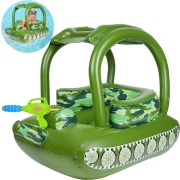 Zwemlichaam voor baby's, opblaasbaar badzitje voor baby's, met zonnedak en veiligheidsrug, zwembad voor baby's, van pvc, met waterpistool, voor kinderen van 2 tot 6 jaar tot 25 kg