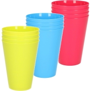 24x stuks onbreekbare kunststof drinkglazen 430 ML in het blauw-groen-roze -