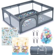 Teddle Grondbox - Speelbox met 50x Speelballen - Kruipbox voor Baby - Kinderbox - Playpen - Baby box - 180x150cm - Grijs