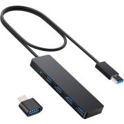 Nuvance - USB 3.0 Hub - 4 Poorten - Inclusief USB C Converter - USB Splitter - Zwart