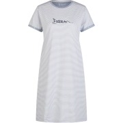 By Louise dames nachthemd is ideaal om te dragen tijdens of voor het slapen. Het nachthemd heeft een grote ronde hals en korte mouwen. Blauw gestreepte uitvoering. Gemaakt van 80% katoen en 20%…