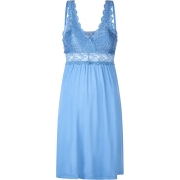 By Louise Slipdress dames nachthemd met kant lichtblauw