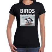 Papegaaiduikers t-shirt met dieren foto birds of the world zwart voor dames. Dit shirt is bedrukt met een foto van een Papegaaiduiker met de tekst: birds of the world. Een gaaf shirt voor een…