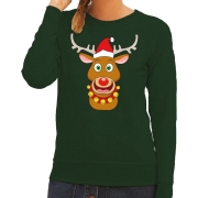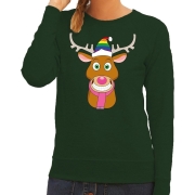Foute kersttrui rendier Rudolf met rode kerstmuts groen dames M (38) -