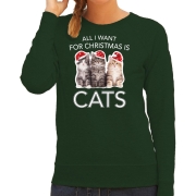 Kitten Kerst sweater / outfit All I want for Christmas is cats groen voor dames M -