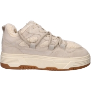 Trendy sneaker van het Amerikaanse merk Steve Madden. De sneaker in de kleur Taupe multi heeft een vetersluiting, suede en stoffen details en een teddy rand…