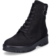 Waldläufer dames enkellaars van nubuckleer in zwart met fleece voetbed, warme voering en vetersluiting met extra ritsen…