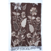 Deels enkel, deels dubbel geweven boiled wool sjaal met handborduursels. Kleurstelling: chocolade bruin met beige. Afmetingen: 70 x 180 cm. Gemaakt in India…