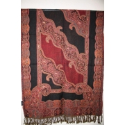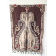 Volledig dubbel geweven wollen sjaal met borduurwerk. Kleurstelling: hoofdzakelijk diverse bruin tinten met beige. Afmeting 70 x 180 cm, samenstelling 100% boiled wool. Gemaakt in India…