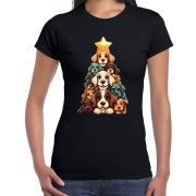 Kerst T-shirt voor dames - kerstboom van hondjes - zwart - kersthondjes - Kerstmis S -