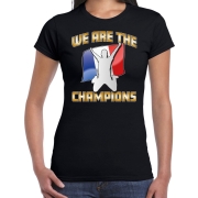 Verkleed T-shirt voor dames in de kleur zwart. Het shirt is bedrukt met de tekst: We are the champions! Met de vlag van Frankrijk. Heb je binnenkort een voetbal wedstrijd of een ander sport…