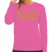 Apres ski sweater dames - Auf wieder Schnitzel - roze - glitter goud - wintersport - skieen L -