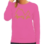 Apres ski sweater dames - Apres ski - roze - glitter goud - wintersport - skieen/snowboarden S -