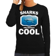 Dieren sweater/ trui haai zwart voor dames. Op deze sweater staat een haaien afbeelding en de tekst: sharks are serious cool. Een musthave voor een echte dieren/ haaien liefhebber of iemand die…