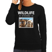 Alpaca sweater / trui met dieren foto wildlife of the world zwart voor dames. Deze sweater is bedrukt met een foto van een Alpaca met de tekst: wildlife of the world. Een gave trui voor een echte…