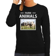 Kudde koeien sweater / trui met dieren foto farm animals zwart voor dames. Deze trui is bedrukt met een foto van een Koe met de tekst: farm animals. Een gave sweater voor een echte…