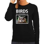 Uilen sweater / trui met dieren foto birds of the world zwart voor dames. Deze sweater is bedrukt met een foto van een Uil met de tekst: birds of the world. Een gave trui voor een echte…