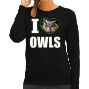 I love owls sweater / trui met dieren foto van een uil zwart voor dames L -
