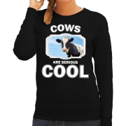 Dieren sweater/ trui koe zwart voor dames. Op deze sweater staat een koeien afbeelding en de tekst: cows are serious cool. Een musthave voor een echte dieren/ koeien liefhebber of iemand die alles…