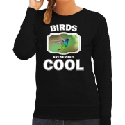 Dieren sweater/ trui kolibrie vogel vliegend zwart voor dames. Op deze sweater staat een vogels afbeelding en de tekst: birds are serious cool. Een musthave voor een echte dieren/ vogels…
