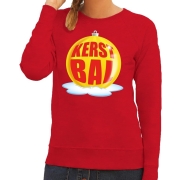 Foute kersttrui kerstbal geel op rode sweater voor dames S (36) -