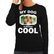 Sheltie honden sweater / trui my dog is serious cool zwart voor dames S -