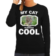 Bruine kat katten sweater / trui my cat is serious cool zwart voor dames S -