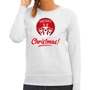 Rendier Kerstbal sweater / Kerst outfit Merry Christmas grijs voor dames M -