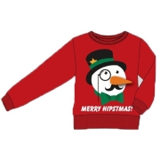 Kersttrui Merry Hipstmas voor volwassenen. Rode kersttrui met een afbeelding van een sneeuwpop en de tekst: Merry Hipstmas. De sneeuwpop heeft een 3D neus. Materiaal: 100% polyacryl. …