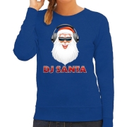 Foute kersttrui / sweater blauw DJ santa dance/electronic music met koptelefoon voor dames. De Kerst sweater is bedrukt met een kerstman en koptelefoon met de tekst: DJ Santa. Deze kersttrui /…