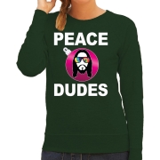 Hippie jezus Kerstbal sweater / Kerst outfit peace dudes groen voor dames XL -