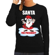Santa for president Kerst sweater / foute Kersttrui zwart voor dames 2XL -