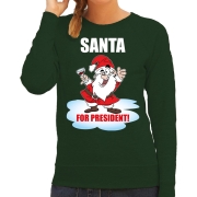 Santa for president Kerst sweater / foute Kersttrui groen voor dames S -
