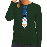 Foute kersttrui stropdas met sneeuwpop print groen voor dames S (36) -