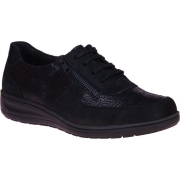 Zwart nubuck damesschoen van het merk Solidus. De binnenzool is uitneembaar, ideaal voor steunzolen.…
