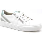 Wit lederen damesschoen met munt groen metallic accenten van het merk Solidus. De binnenzool is uitneembaar, ideaal voor steunzolen.…