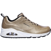 De perfecte combinatie tussen glamour en sportief vind je in de SKECHERS Uno - Diamond Shatter dames vetersneakers. Sprankelende, metallic hot-melt upper met all-over structuur in een stijvolle…