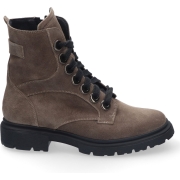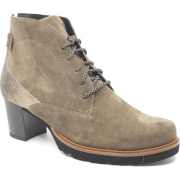 Stoere enkellaarsje met een veter op een hoge hak in khaki taupe combi suède van Durea art 9777…